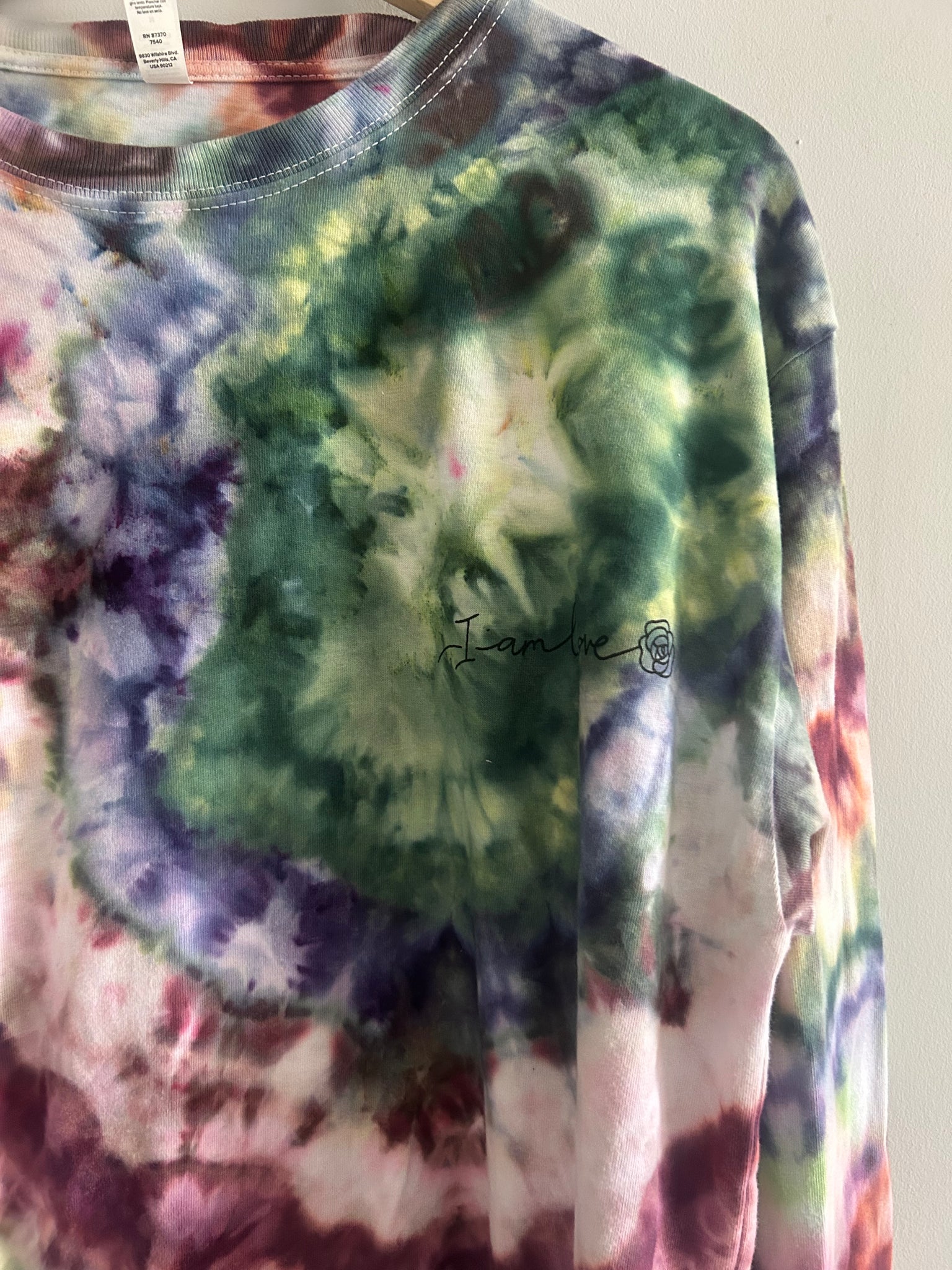 Represents balance in the chaos. Rooted Light reminds you to stay steady as you grow and to let light reach even the tangled parts of your journey. Hand-dyed with intention, one of a kind, and made to be lived in.